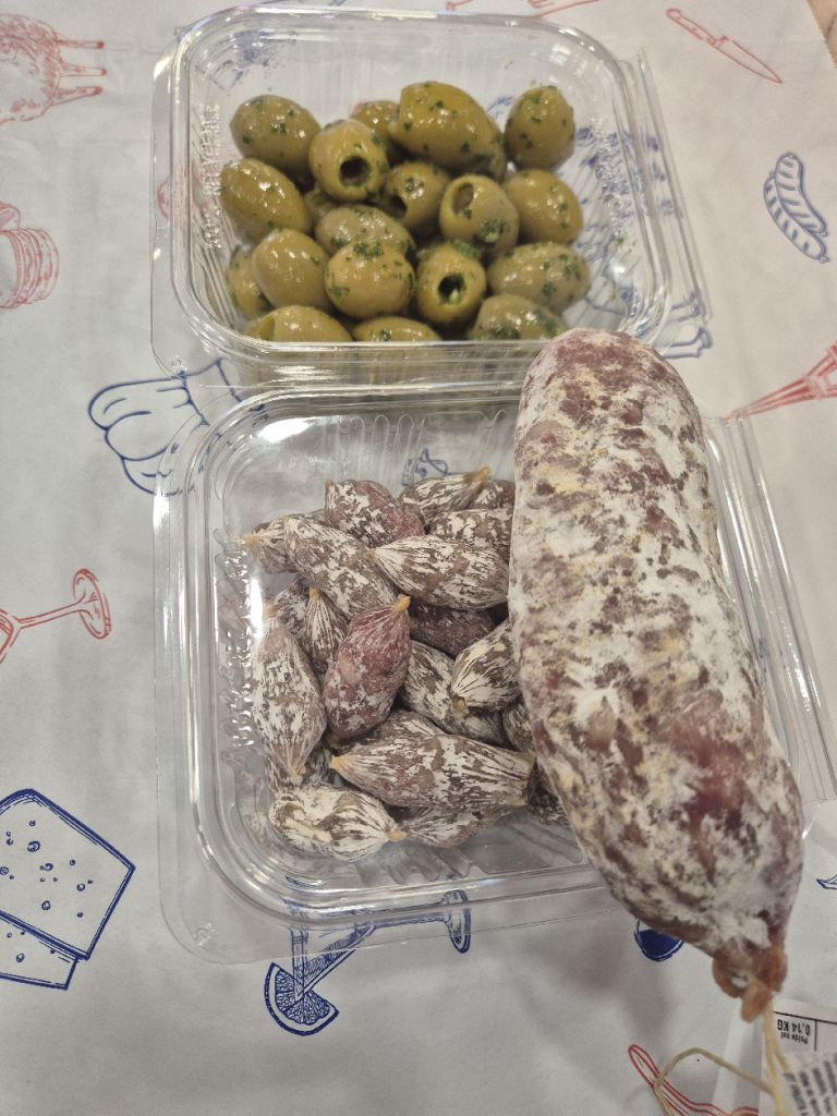kit apero olives à l'ail + saucisson nature+ mini saucisson